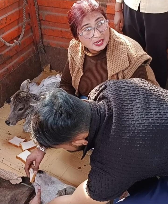 लखनऊ, कैनविज टाइम्स संवाददाता। राजधानी स्थित नरपतखेड़ा डूडा कॉलोनी में बीमार अवस्था में पड़ी एक गाय को नगर निगम द्वारा रेस्क्यू न किए जाने की शिकायत स्थानीय लोगों ने आकर्षक फाउंडेशन की फाउंडर अरशी शर्मा तक पहुंचाई। जानकारी मिलते ही अरशी शर्मा ने तुरंत नगर निगम के अधिकारियों से संपर्क कर मामले को संज्ञान में लेने का आग्रह किया। सूत्रों के अनुसार शिकायत दर्ज होते ही निगम की टीम सक्रिय हुई और तत्काल प्रभाव से गाय को रेस्क्यू कर कान्हा उपवन भेजा गया, जहां उसका इलाज शुरू कराया गया है। स्थानीय निवासियों ने आकर्षक फाउंडेशन के इस त्वरित प्रयास की सराहना की है। वहीं, फाउंडेशन का कहना है कि पशुओं की सुरक्षा और सेवा के लिए संस्था लगातार सक्रिय रूप से काम कर रही है।