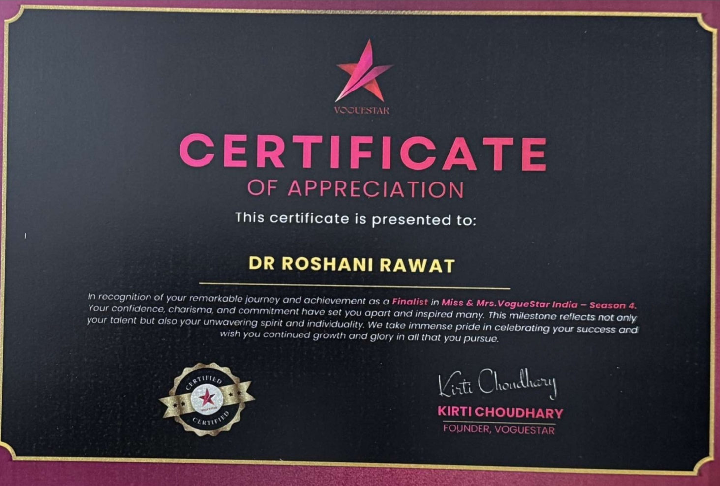 लखनऊ, कैनविज टाइम्स संवाददाता। भारत की प्रतिष्ठित पैजेंट्री संस्था ने वॉगस्टार इंडिया सीजन–4 का तीन दिवसीय आयोजन 16, 17 और 18 जनवरी को जयपुर, राजस्थान में किया गया। प्रतियोगिता की संस्थापिका कीर्ति चौधरी ने इस मंच के माध्यम से महिलाओं और युवतियों में आत्मविश्वास, साहस और सशक्तिकरण को बढ़ावा देने का संदेश दिया। प्रतियोगिता की सबसे खास बात यह रही कि इसमें किसी भी आयु वर्ग की महिला और युवती को भाग लेने का अवसर दिया गया, जबकि कद को लेकर कोई प्रतिबंध नहीं रखा गया। देशभर से हजारों प्रतिभागियों ने इसमें हिस्सा लिया, जिनमें चयन प्रक्रिया के बाद करीब 80 प्रतिभागी अंतिम चरण तक पहुंचीं। अंतिम दौर में प्रतिभागियों के बीच कड़ा मुकाबला देखने को मिला। प्रतियोगिता का आयोजन पांच चरणों में किया गया, जिसमें निर्णायक मंडल ने प्रतिभागियों की प्रतिभा, व्यक्तित्व और प्रस्तुति का गहन मूल्यांकन किया। प्रतियोगिता के प्रशिक्षण सत्रों में शैलजा सूरी, सोर सिंह, प्रीति रावत, गुलनार कौर, शैली, कविता खरायत, सोनू कांबले और पल्लवी ने अहम भूमिका निभाई। प्रतियोगिता में लखनऊ के सीतापुर रोड स्थित मेरिज क्लीनिक के डॉ. एस. के. रावत (शिशु रोग विशेषज्ञ एवं जनरल फिजिशियन) व शशि वर्मा (प्र.अ.) की पुत्री डॉ. रोशनी रावत ने शानदार प्रदर्शन करते हुए फर्स्ट रनरअप का खिताब हासिल किया। उनकी इस उपलब्धि पर परिवार और शुभचिंतकों ने हर्ष व्यक्त किया।
