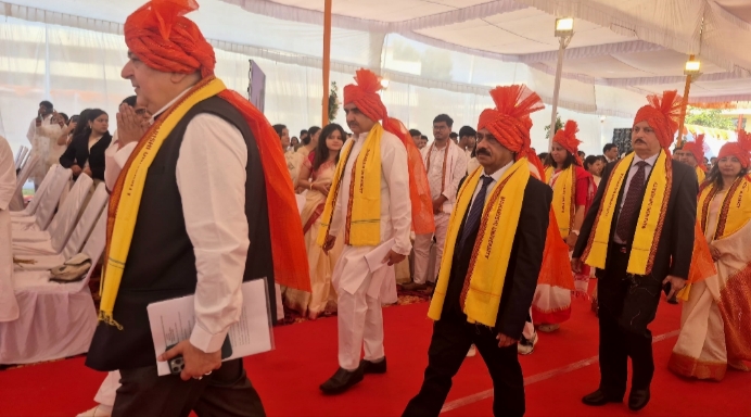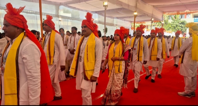 पारंपरिक भारतीय संस्कृति पर आधारित शोभा यात्रा दीक्षांत समारोह की विशेष शोभा रही, जिसमें शामिल सभी लोग पारंपरिक भारतीय परिधान में सुसज्जित थे। प्रत्येक विद्यार्थी ने सिर पर पगड़ी और गले में पीला पटका धारण कर भारतीय परंपरा के गौरव को जीवंत किया। पूरा वातावरण अनुशासन, उत्साह और सांस्कृतिक समृद्धि से भर गया था। इस अवसर पर कंट्रोलर ऑफ एग्जामिनेशन डॉ. के. के. शुक्ला, डिप्टी रजिस्ट्रार संदीप शर्मा, वरिष्ठ प्रशासनिक अधिकारी डॉ. राजेश सिंह तथा विश्वविद्यालय के सभी विभागों के डीन, डिप्टी डीन और संकाय सदस्य उपस्थित रहे।