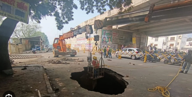 सीवर लाइन में लीकेज से धंसी थी सड़क